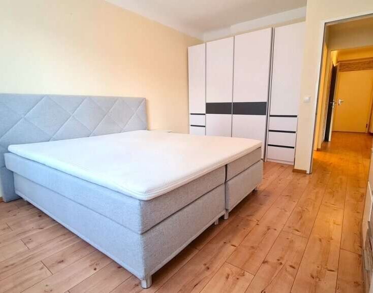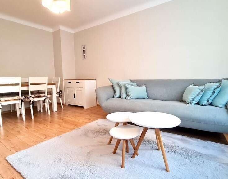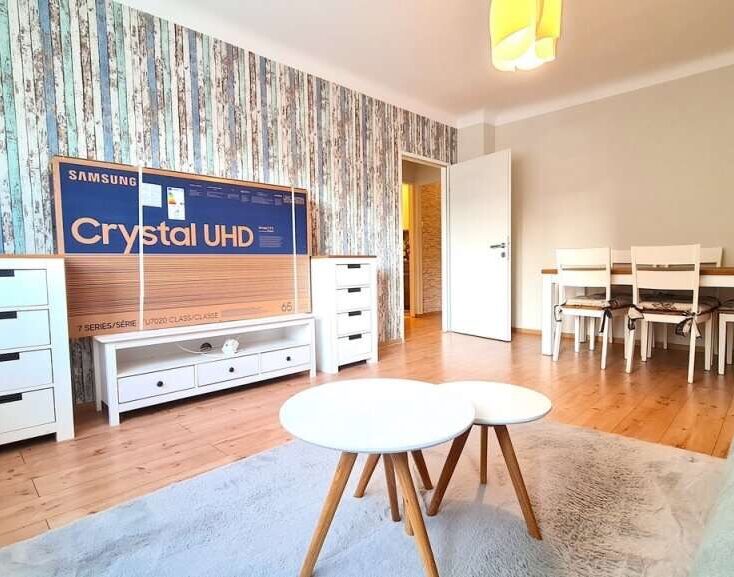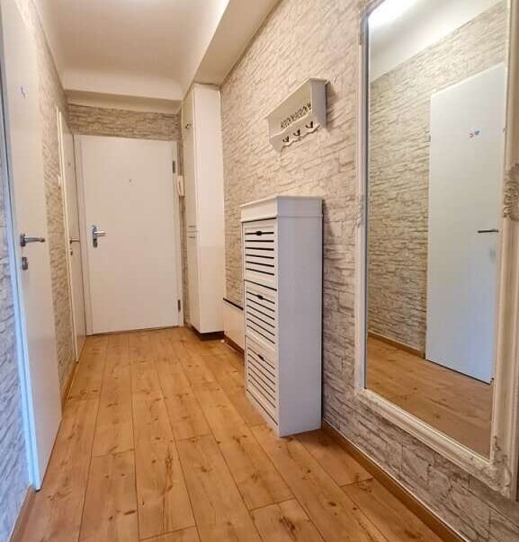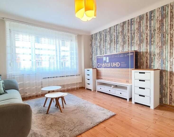 Эта светлая 2-комнатная квартира (около 51 м²) на первом этаже привлекает своим идеальным расположением и отличной инфраструктурой. Современная планировка с прихожей, уютной гостиной, отдельной спальней, ванной комнатой с душем и практичной кухней предлагает все необходимое для проживания.
