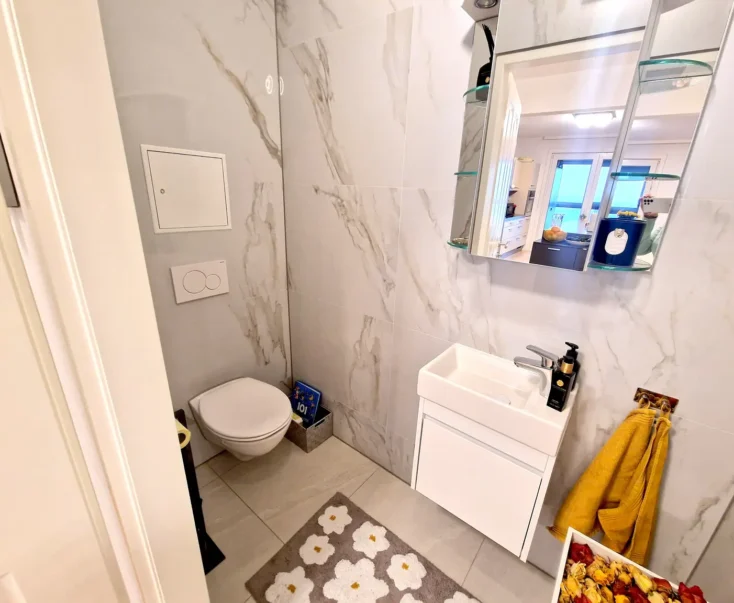 Квартира также имеет 2 отдельных туалета, которые обеспечивают дополнительный комфорт. Высококачественная плитка и паркетные полы придают квартире элегантный вид и в то же время просты в уходе. Центральное отопление обеспечивает уютное тепло в холодные дни, а двойное или многослойное остекление пластиковых окон гарантирует оптимальную изоляцию и тишину в вашем новом доме.